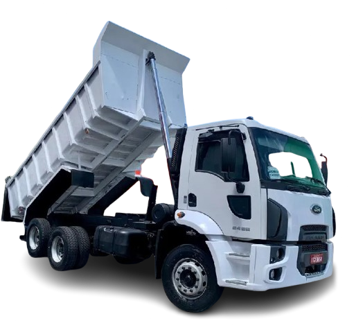 Caçambas truck e carretas abertas para atender diferentes volumes e condições de descarga.